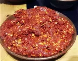 椒麻牛肉,是一道家常菜,制作原料主要有红辣椒、青辣椒、牛里脊。