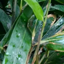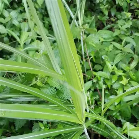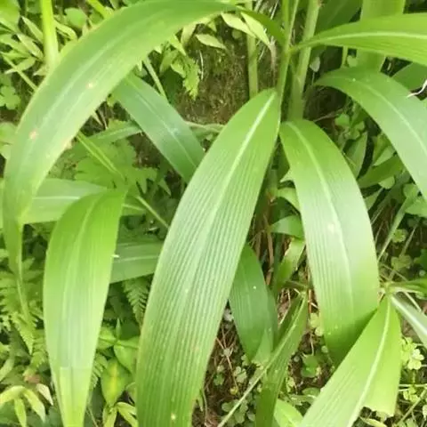 叶鞘长于其节间,肥厚、有小横脉;叶舌膜质,长约1.4厘米,顶端尖;叶片扁平宽大,长50-90厘米,宽15-30毫米。