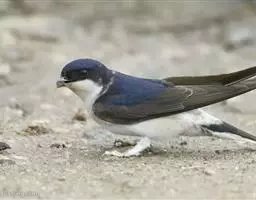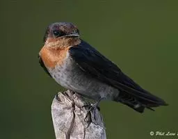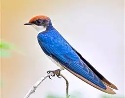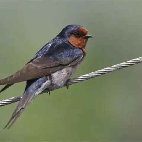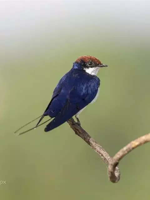 线尾燕,腹部接近纯白色,背部则为深紫色,头部的羽毛是栗色的。