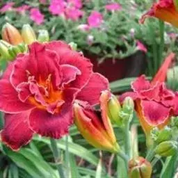 金娃娃萱草:是萱草的人工栽培的园艺品种。地下具根状茎和肉质肥大的纺锤状块根。叶基生,条形,排成两列,…