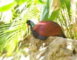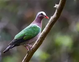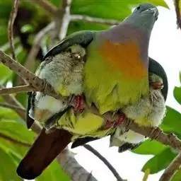橙胸绿鸠主要为留鸟,通常单独或成5—6只的小群活动,有时也与其他鸟类混群活动。早晨和傍晚活动最为频繁。喜欢栖息于枯立的树顶枝上。叫声为美妙抑扬的口哨声。主要以榕树果实为食,也吃其他植物的果实与种子。