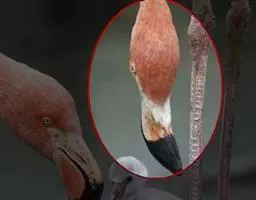 虹膜的外圈为粉红色至绯红色,内圈为蓝色,眼周的裸露皮肤紫蓝色。嘴呈淡蓝绿色,先端黄色。脚深红色,爪角褐色。
