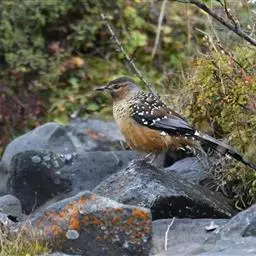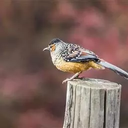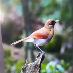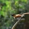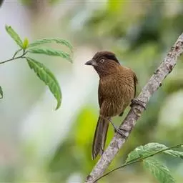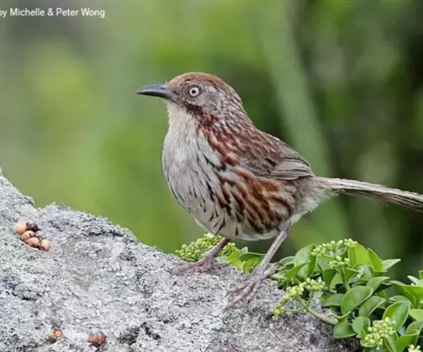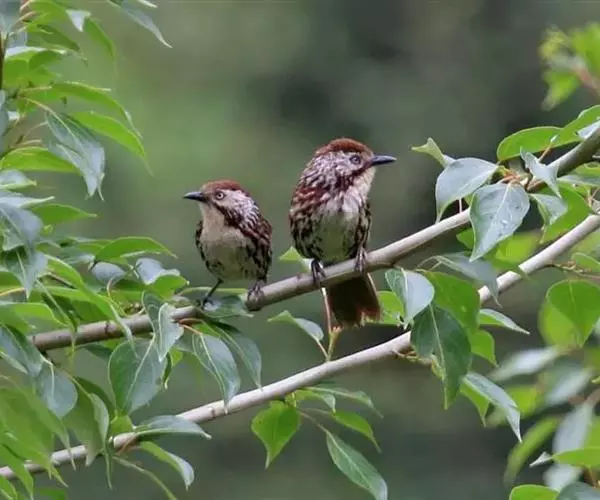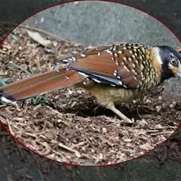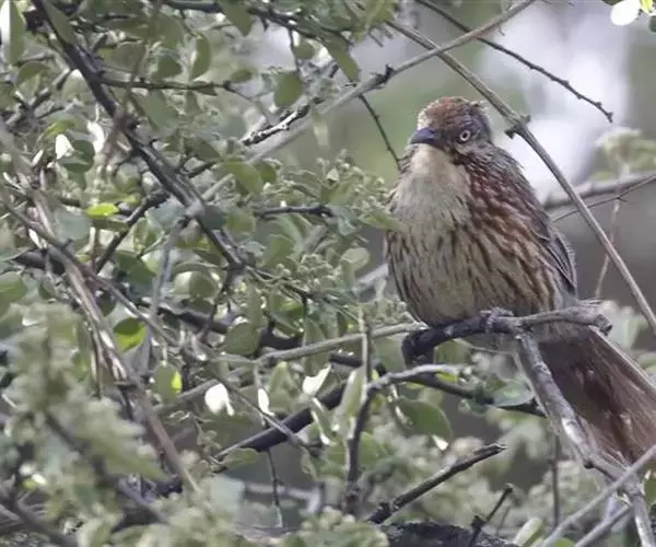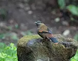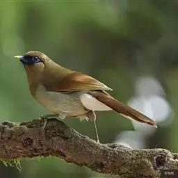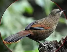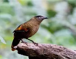 大噪鹛:中型鸟类,体长32-36厘米。额至头顶黑褐色,背栗褐色满杂以白色斑点,…