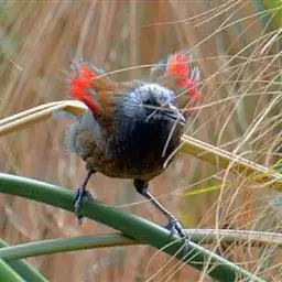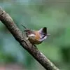 纹喉凤鹛:小型鸟类,体长13-16厘米。头顶和羽冠暗褐色或褐灰色,上体橄榄褐色,飞羽黑褐色,…