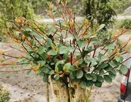 落叶直立乔木或灌木,高2-10米,胸径达8厘米,幼枝灰绿色,密被灰绿色星状 翅果油树 绒毛和鳞片,老枝绒毛和鳞片脱落,栗褐色或灰黑色;芽球形,黄褐色。