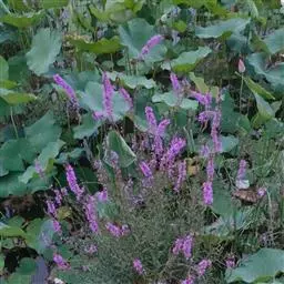 千屈菜是千屈菜科千屈菜属的多年生草本植物;根茎粗壮;叶披针形或宽披针形,无柄;花序簇生,呈聚伞状,…
