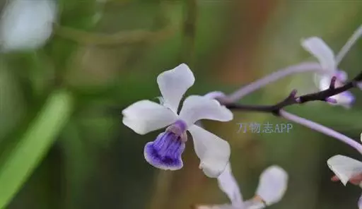 小蓝万代兰(拉丁学名:Vanda coerulescens Griff.):兰科,万代兰属附生草本植物。茎长可达8厘米或更长,叶多少肉质,带状斜立,花序近直立,柄粗壮,疏生许多花;花苞卵状三角形,萼片和花瓣淡蓝色或白色带淡蓝色晕;唇瓣深蓝色,蕊柱蓝色,药帽淡黄色。3-4月开花。生于海拔700-600米 的疏林中树干上。
