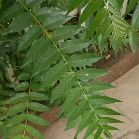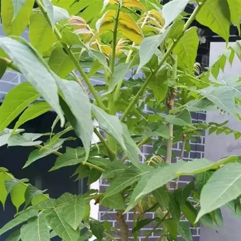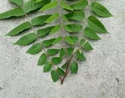 小叶3-15对,卵形或卵状披针形,长5-10(-13)厘米,先端渐尖,基部宽楔形或近圆,有粗齿,两面被柔毛,下面较密;小叶柄长4-8毫米。雄花序长15-25(-40)厘米,雌花序长约雄花序一半。