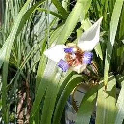 亮叶鸢尾为常绿多年生草本植物。叶面光滑、亮绿色,花茎扁平叶状。原产于巴西。