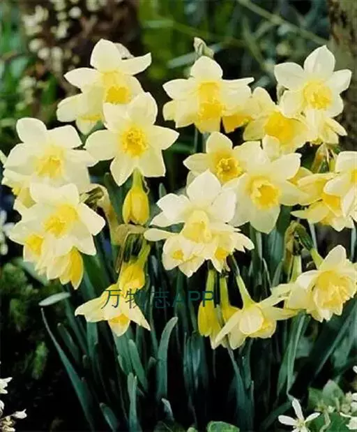 重瓣的有新娘花冠,副冠黄色,多头;快乐,多头;花漂,副冠橙色;白狮,副冠黄色。