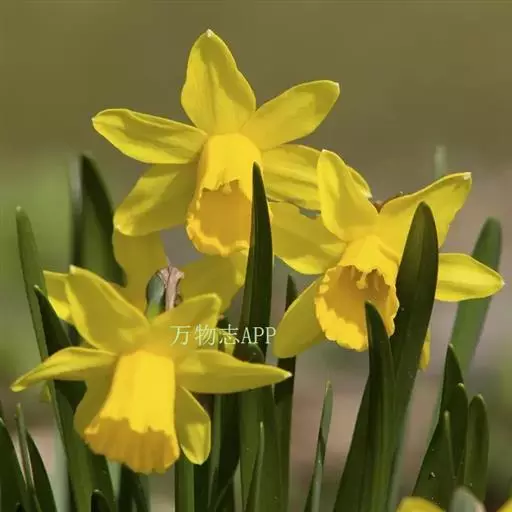 黄水仙(学名:Narcissus pseudonarcissus L.):又名洋水仙、喇叭水仙等,石蒜科多年生草本。鳞茎球形;叶直立向上,宽线形,钝头。花茎高约30厘米,顶端生花;佛焰苞状;花被管倒圆锥形,花被裂片长圆形,淡黄色;副花冠稍短于花被或近等长。花期春季。