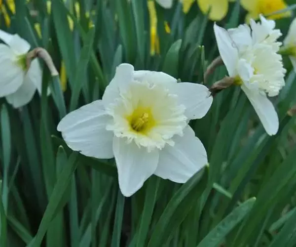 单瓣白花的有克拉奇福特、花汞,副冠橙色;天竺葵,副冠橙色,多头;酒杯,副冠黄色;轰动荷兰,副冠黄色;冰冬青,副冠黄色;约翰斯特劳斯,副冠橙红色;胡尼坦,副冠橙红色;朱尔斯维恩,副冠白色;拉斯维加斯,副冠黄色;胡德山,全白;白纸,全白,多头;爱因斯坦教授,副冠橙色;红山,副冠红色;莎乐美,副冠红色;托波利诺,副冠黄色,多头。