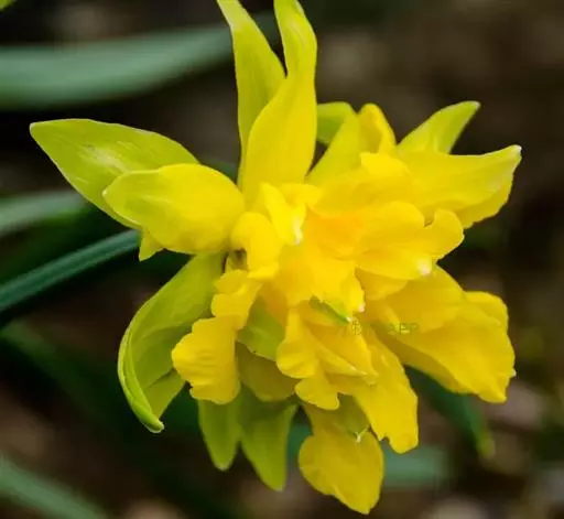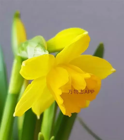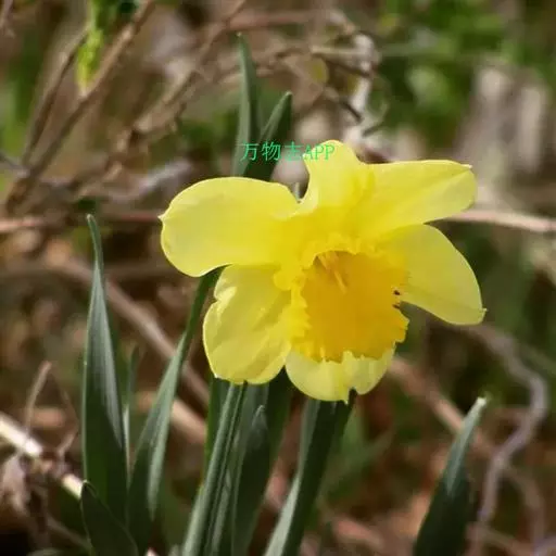 黄水仙为多年生草本。有皮鳞茎卵圆形。直径2.5-3.5厘米。叶4-6枚,直立向上,宽线形,长25-40厘米,宽8-15毫米,钝头。花茎高约30厘米,顶端生花1朵;佛焰苞状总苞长3.5-5厘米;花梗长12-18毫米;花被管倒圆锥形,长1.2-1.5厘米,花被裂片长圆形,长2.5-3.5厘米,淡黄色;副花冠稍短于花被或近等长。花期春季。