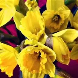 盆栽黄水仙常用15-20厘米盆,每盆栽鳞茎3-5个,栽后鳞茎上方覆土6-8厘米,浇透水后放半阴处。在冬季根部生长期和春季叶片生长期保持盆土湿润,3-4月就能正常开花。盆栽黄水仙常用促成栽培,将鳞茎放35℃下贮藏5天,再经17℃贮藏至花芽分化完全,约1个月,然后放9℃低温下贮藏6-8周,盆栽后白天室温21℃、晚间15℃,60-70天后开花。在叶片生长期可施用"卉友"15-15-30盆花专用肥或施腐熟农用肥1-2次。