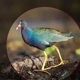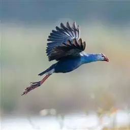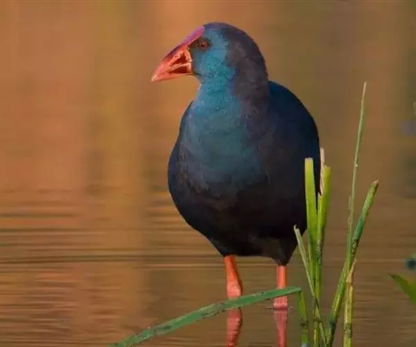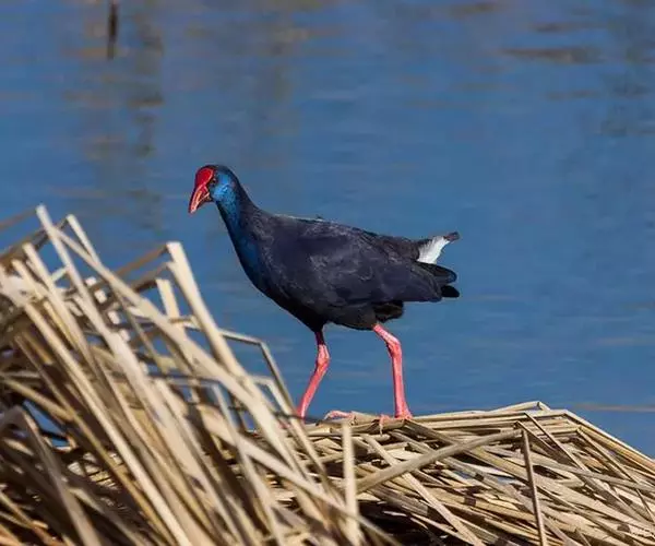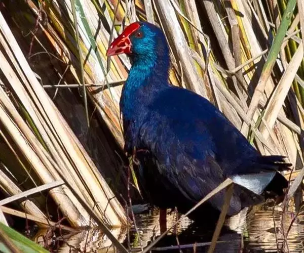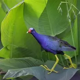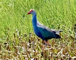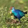 紫水鸡(学名:Porphyrio porphyrio)是鹤形目秧鸡科的鸟类,中型涉禽,共有13个亚种。体长约44厘米。嘴粗壮,鲜红色,短而侧扁;鼻沟浅而宽,鼻孔小而圆,在鼻沟前部下方,额甲宽大,后缘呈截形,橙红色。翅圆形,第2枚、第3枚和第4枚初级飞羽最长,并几乎等长;第1枚和第6枚或第7枚初级飞羽等长。跗蹠和趾长而有力,暗红色;能用脚趾抓住和操纵食物,这在秧鸡科中很特殊。两性同型,体羽大都为紫色或蓝色,尾下覆羽白色,翅和胸蓝绿色。栖息于江河、湖泊周围的沼泽地和芦苇丛中。以昆虫、软体动物、水草等为食。