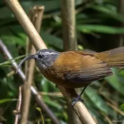 剑嘴鹛:中型鸟类,体长21-22厘米。嘴特别细长而向下弯曲,头顶和头侧烟灰色具长而窄的白色眉纹,…