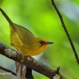 金头穗鹛小型鸟类,体长10~11厘米,是一种黄色小鸟。头顶金黄色有黑色纵纹,眼先黑色,…