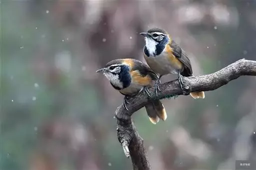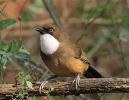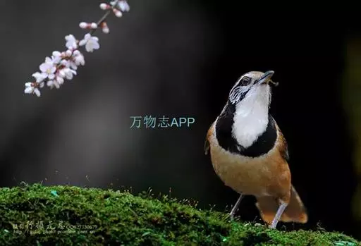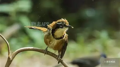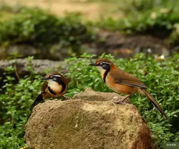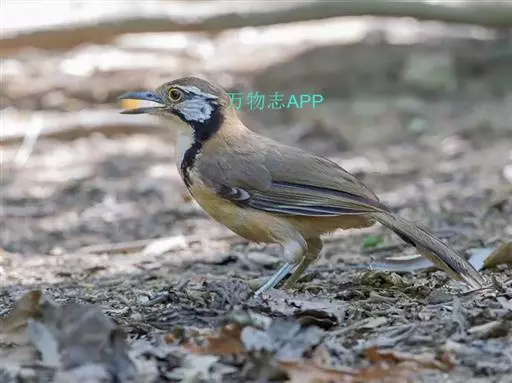 黑领噪鹛(学名:Garrulax pectoralis):中型鸟类,体长28-30cm。上体棕褐色。后颈栗棕色,形成半领环状。眼先棕白色,白色眉纹长而显著,耳羽黑色而杂有白纹。下体几全为白色,胸有一黑色环带,两端多与黑色颧纹相接。
