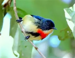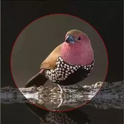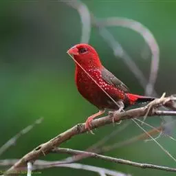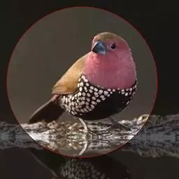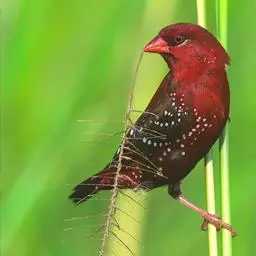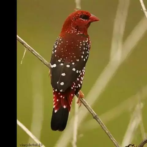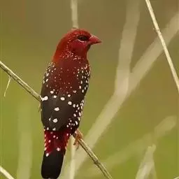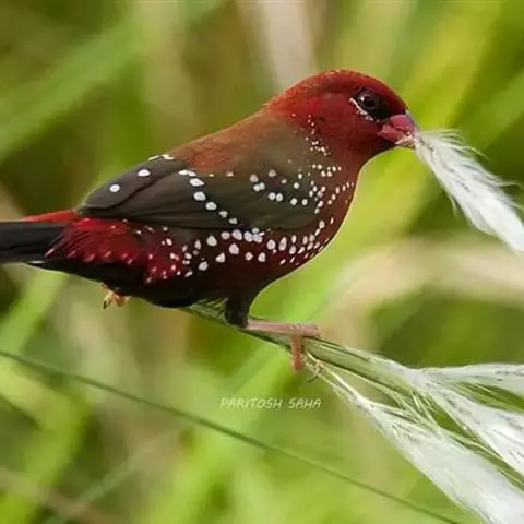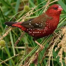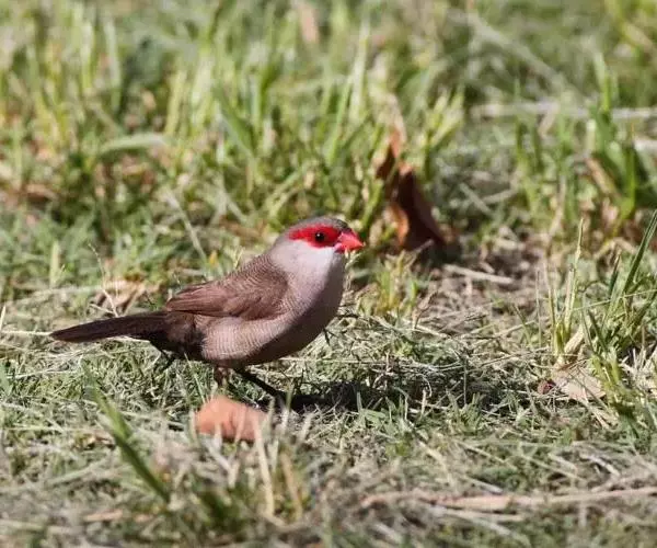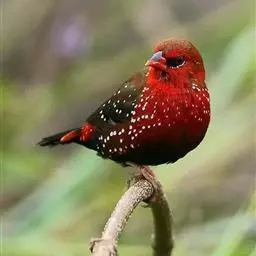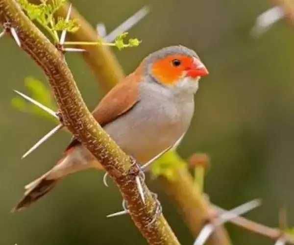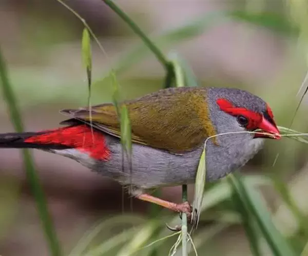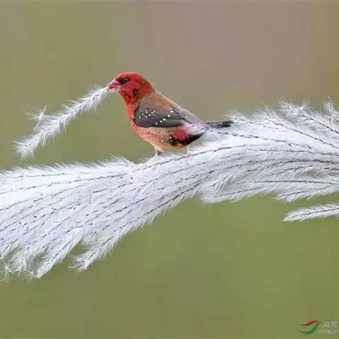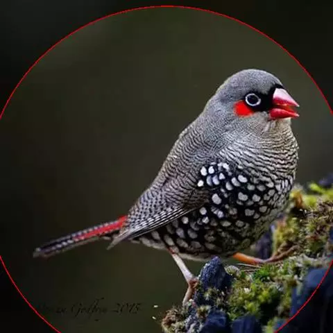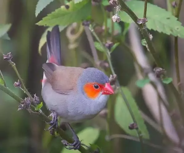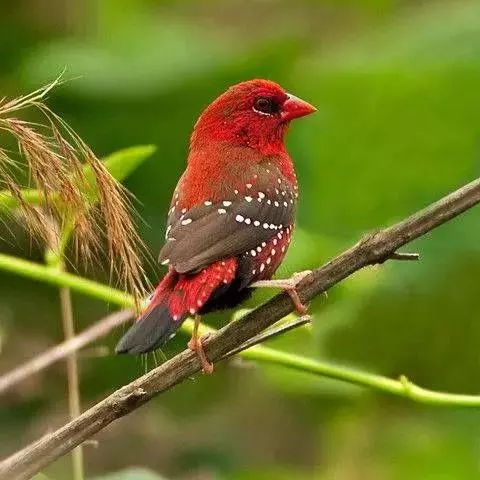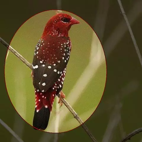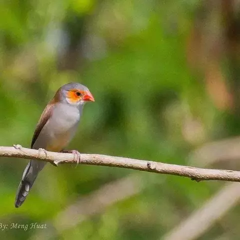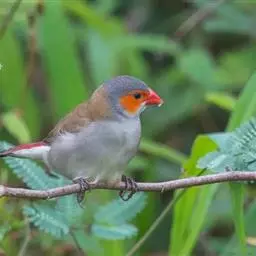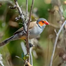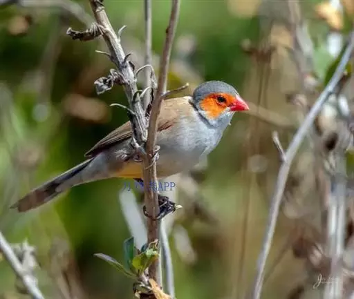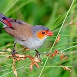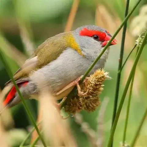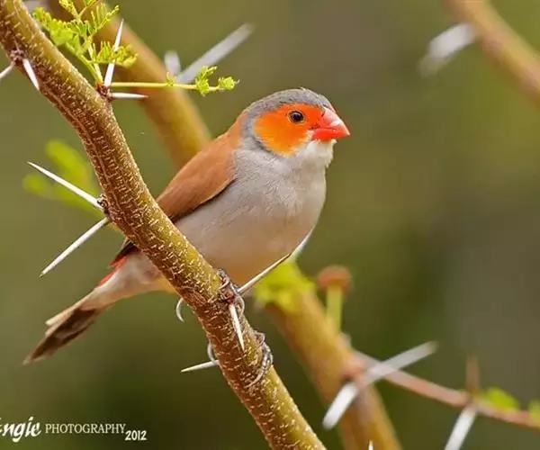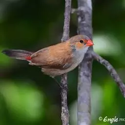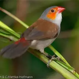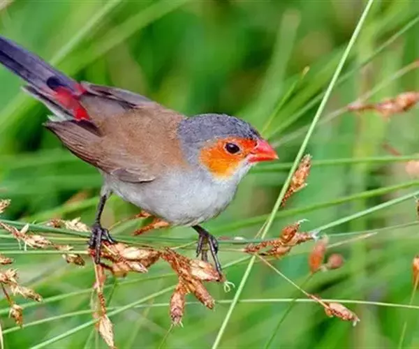 尾上覆羽:雄鸟具红色的尾上覆羽,此为橙颊梅花雀独有的特征