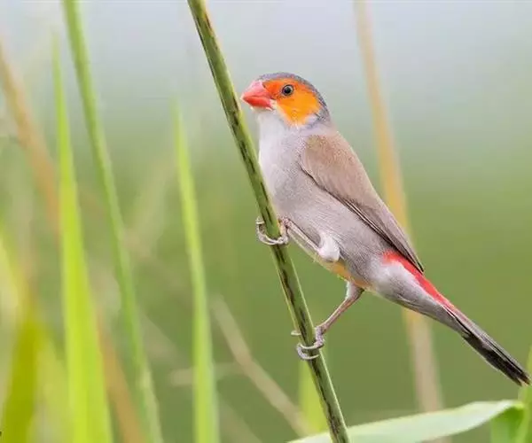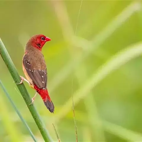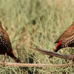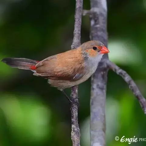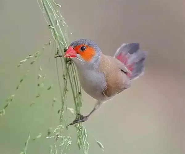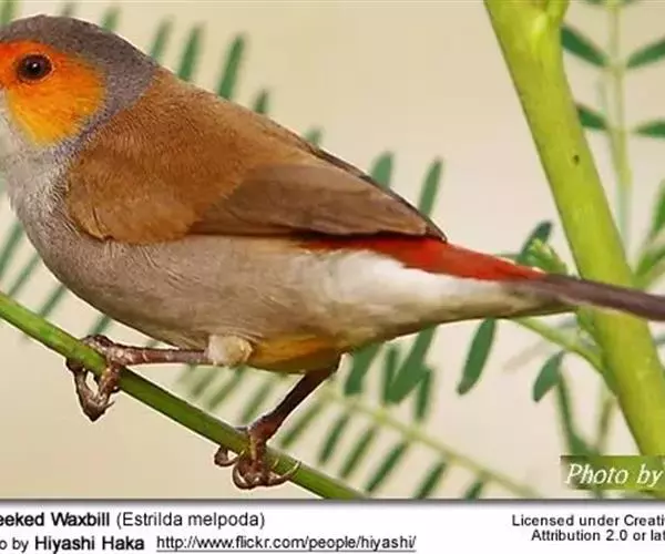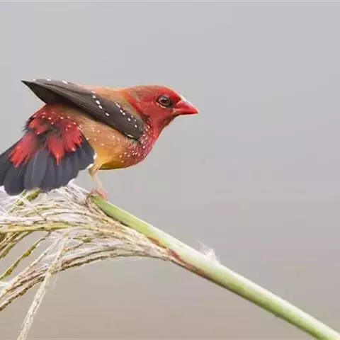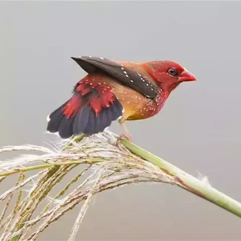 尾:尾部是橙颊梅花雀个体沟通的重要工具。雄鸟在向雌鸟求偶炫耀时,会前后轻弹其尾。