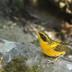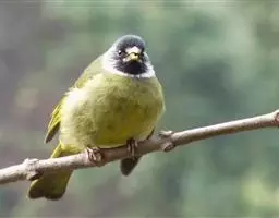 两性差异:雌雄难辨;雌鸟羽色较浅,橙色颊斑比雄鸟小。