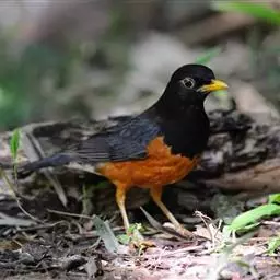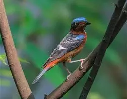 雌雄难辨;雌鸟羽色较浅,橙色颊斑比雄鸟小。幼鸟羽色比成鸟浅,头部灰褐色。