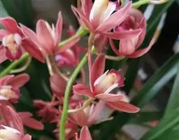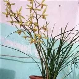 兰花(学名:Cymbidium ssp.):附生或地生草本,叶数枚至多枚,通常生于假鳞茎基部或下部节上,二列,带状或罕有倒披针形至狭椭圆形,基部一般有宽阔的鞘并围抱假鳞茎,有关节。总状花序具数花或多花,颜色有白、纯白、白绿、黄绿、淡黄、淡黄褐、黄、红、青、紫。