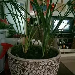 花盆以口小、盆深、底孔大的为佳。新从山上挖来的野生苗须植于瓦盆,2~3年后方可换入紫砂盆或瓷盆。先在盆底孔上盖以蚌壳、棕片等,上加粗砂、煤渣和木炭成馒头状,约占容量1/3。上加培养土约厚3~5厘米。一般不加基肥。然后将兰放入盆中,将根疏密排好,加拌好的细土至距盆2~3厘米处为止,将兰株稍稍提起,高度以假鳞茎上端与土面平齐为准,不可过浅或过深。轻压盆土,使土与根紧密接触,再用手指沿盆周围压实,以免浇水时造成空洞。最上层若敷一层青苔或碎瓦片,浇水不容易造成板结,并可减少水分蒸发。第一次浇水采用坐盆法,使盆吸足水分。最后将盆兰放于荫处约半月至1个月。这段时间须控制浇水,不可太湿。以后放置于半荫半阳,透风透气,早上能照到太阳处。盆台要高1米左右,不能摆在平台上,以防蚂蚁和蚯蚓从盆底孔中进入,影响兰花生长。培养土可用山上第一层山坡土,或用细沙与壤土3:7加腐殖质堆肥30%拌匀。培养土都要经过筛经消毒处理后使用。