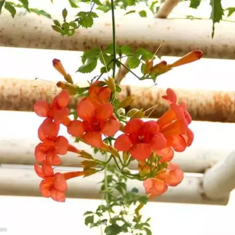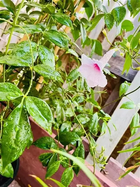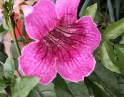 粉花凌霄 K.Schum.)是紫葳科魔盒凌霄属的落叶藤本植物。奇数羽状复叶对生,小叶全缘,…