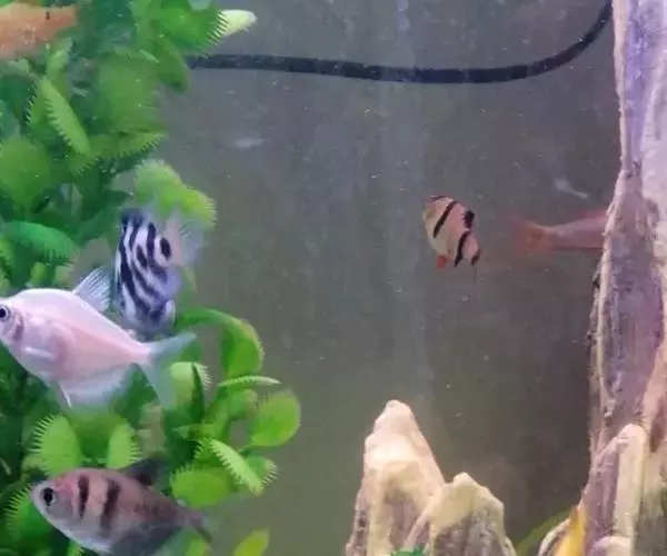 水质:虎皮鱼耗氧量高,在水温过高的情况下较容易造成缺氧,一般要求水体含氧量在5毫克/升左右。对酸碱度及硬度没有过高的要求,pH值在6.2-7.8,硬度在2-10°dGH均能生存,因此其喜欢生活在含氧量高、水质清澈的老水中。