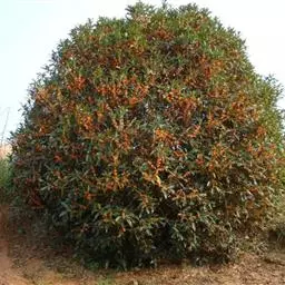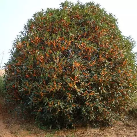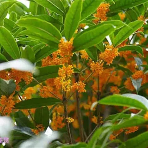 柳叶桂:小乔木或灌木状,树冠长圆形、圆球形,分枝较多。叶椭圆状披针形或长椭圆形,全缘。叶先端渐尖,稀先端有少数锯齿。9月中下旬至10月上旬开花,每芽有花5-7朵,花朵稀疏,花银白色至黄白色、淡黄色,浓香。