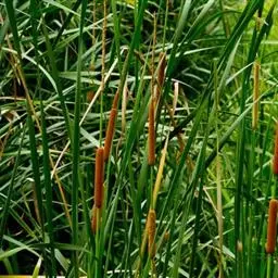 香蒲 香蒲叶绿穗奇常用于点缀园林水池、湖畔,构筑水景,宜做花境、水景背景材料,也可盆栽布置庭院,因为香蒲一般成丛、成片生长在潮湿多水环境,所以,通常以植物配景材料运用在水体景观设计中。香蒲与其它水生植物按照它们的观赏功能和生态功能进行合理搭配设计,能充分创造出一个优美的水生自然群落景观。另外,香蒲与其它一些野生水生植物还可用在模拟大自然的溪涧、喷泉、跌水、瀑布等园林水景造景中,使景观野趣横生,别有风味
