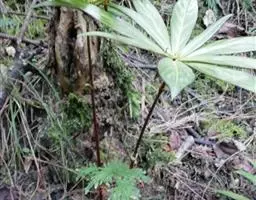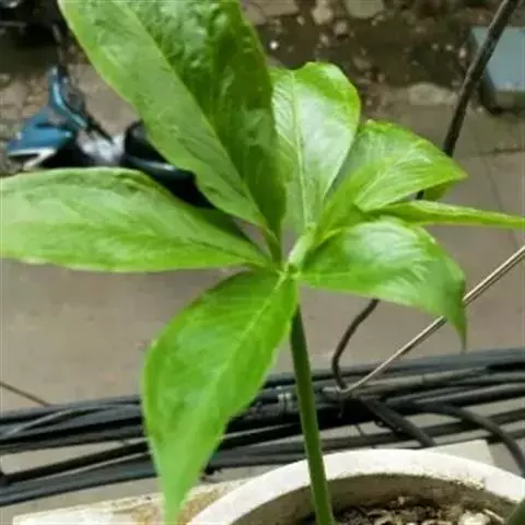块茎圆球形,直径1~2厘米,具须根。叶2~5枚,有时1枚。叶柄长15~20厘米,基部具鞘,鞘内、鞘部以上或叶片基部(叶柄顶头)有直径3~5毫米的珠芽,珠芽在母株上萌发或落地后萌发;幼苗叶片卵状心形至戟形,为全缘单叶,长2~3厘米,宽2~2.5厘米;老株叶片3全裂,裂片绿色,背淡,长圆状椭圆形或披针形,两头锐尖,中裂片长3~10厘米,宽1~3厘米;侧裂片稍短;全缘或具不明显的浅波状圆齿,侧脉8~10对,细弱,细脉网状,密集,集合脉2圈。