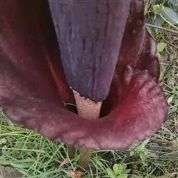 花序柄长25~30(~35)厘米,长于叶柄。佛焰苞绿色或绿白色,管部狭圆柱形,长1.5~2厘米;檐部长圆形,绿色,有时边缘青紫色,长4~5厘米,宽1.5厘米,钝或锐尖。肉穗花序:雌花序长2厘米,雄花序长5~7毫米,其中间隔3毫米;附属器绿色变青紫色,长6~10厘米,直立,有时“S”形弯曲。