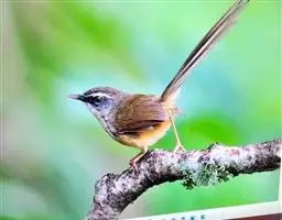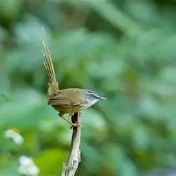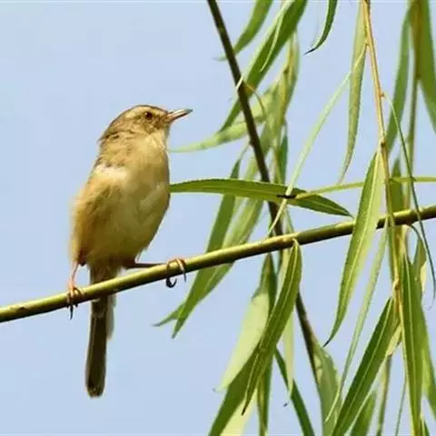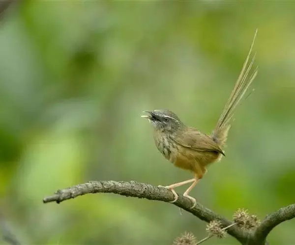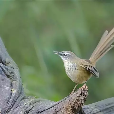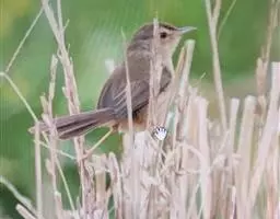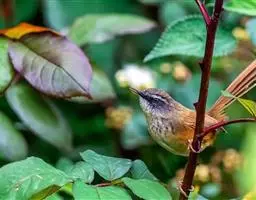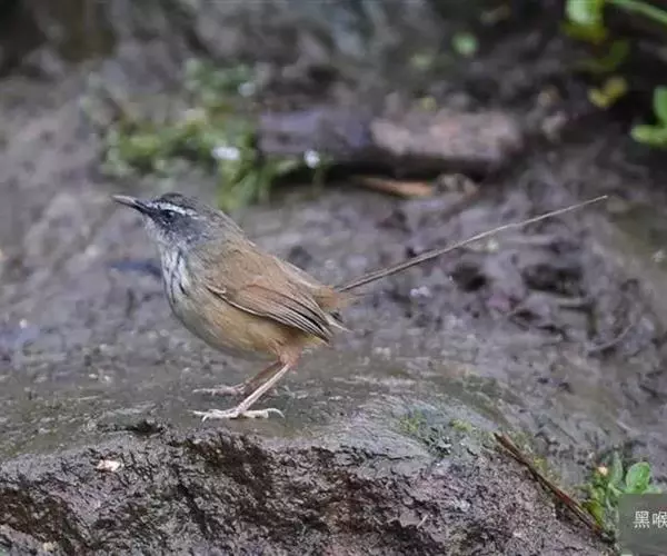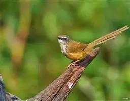 黑喉山鹪莺(学名:Prinia atrogularis):体长16厘米,是一种长尾的褐色鹪莺。具明显的白色眉纹及形长的尾。特征为胸具黑色纵纹。上体褐色,两胁黄褐,腹部皮黄;脸颊灰,具明显的白色眉纹及形长的尾。无下髭纹,下体少黑色。虹膜浅褐色,上嘴暗色,下嘴浅色,脚偏粉色。