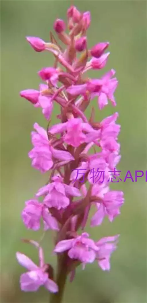 手参(拉丁学名:Gymnadenia conopsea (L.) R. Br.)单子叶植物纲,兰科手参属地生草本植物,植株可达60厘米,肉质椭圆形块茎,下部掌状分裂,茎直立,叶片线状披针形、狭长圆形或带形,总状花序,密生的花,花苞片披针形,花瓣直立,花粉团卵球形,粘盘线状披针形。6至7月份从中抽生出穗状花序,开粉红泛白色小花,很美。8至9月长圆形蒴果成熟。