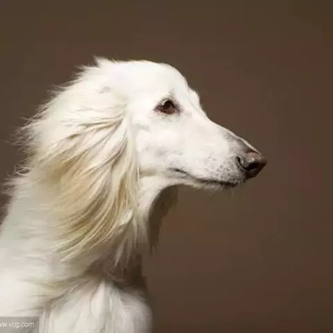 头部大于其它中型犬;眼睛小,三角形;耳朵小,稍前倾,立耳;尾向上卷,尾成镰刀形卷尾或半卷尾;肌肉发达的四肢。上部毛辋粗短,下部毛柔软密生。毛色从前有白色,红色,胡麻色;现只有白色与淡茶色,以白色为最佳。颈毛与尾毛稍长 。