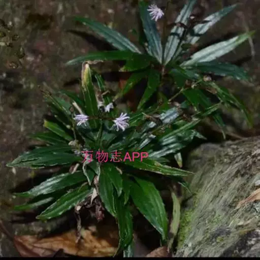 多年生草本。根状茎短,直,圆柱状,稀略弯曲,直径4-5毫米,根颈被黄褐色绒毛;须根极密,长可达20余厘米。茎直立,单一或少有自根颈发出数枝,高30-60厘米,基部直径2-4毫米,下部疏被短柔毛或脱落变无毛,叶丛中及叶腋内被毛较长而密。叶聚生于茎的中部,通常离基13-25厘米,下方数片节间长1-15厘米,余者密集的其节间长仅2-3毫米,叶片纸质,狭椭圆形或披针形,长5-9.5厘米,宽5-13毫米,顶端长渐尖,中脉延伸复形成长近1毫米的凸尖头,基部渐狭,略下延,边缘背卷,每侧向两端各具6-8个、长1-1.5毫米的芒状细齿,上面深绿色,背面淡绿色,两面均无毛;基出脉3条,两面均凸起,于下面尤著,两侧的1对上升直达叶片顶部,中脉上部具极少、不规则的柔弱侧脉,网脉无;叶柄长1-1.5厘米,基部被疏柔毛。头状花序具被短柔毛的柄,内含小花3朵,于茎顶排成圆锥花序;圆锥花序轴被短柔毛,分枝短,柔弱,基部具钻形或狭三角形的苞叶;总苞圆筒形,直径2-3毫米;总苞片约7层,无毛,背部有纵纹,外1-3层卵形,长1-2毫米,宽0.8-1毫米,顶端钝,中层卵状披针形,长3-5毫米,宽1.5-2毫米,顶端亦钝,最内层狭椭圆形,长10-12毫米,宽约1.8毫米,顶端渐尖;花托狭,无毛,直径约0.8毫米。花全部两性,花冠白色,长约9毫米,花冠管纤细,管口上方5深裂,裂片偏于I侧,长圆形,约与花冠管等长;花药顶端钝圆或近截平,长约5毫米,基部的尖尾长为花药的2/5;子房倒锥形,密被粗毛,长约2.5毫米,花柱分枝伸出于药筒之外,内侧扁,顶端钝圆,长不足0.5毫米。瘦果圆柱形,密被粗毛,长约3毫米。冠毛淡黄色或污黄色,羽毛状,长约8毫米,基部稍联合。花期7-9月。