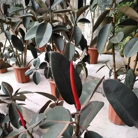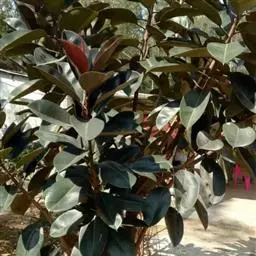 印度榕,别名橡皮树,桑科榕属多年生常绿乔木植物。株高30米;树皮灰白色,平滑;叶厚革质,…