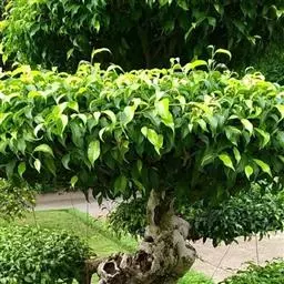 垂叶榕是桑科榕属大乔木植物。树皮灰色,枝下垂;叶薄革质、卵形或卵状椭圆形、拖叶披针形;花宽卵形、花丝短、窄钥形;花柱侧生、花被片短钥形;果球形或扁球形、光滑、熟时红或黄色。花期8-11月。垂叶榕因其叶片像提琴,故此得名垂叶榕、花叶榕等。垂叶榕原产于中国南方地区、泰国、印度及马来西亚一带。喜温暖湿润阳光充足的环境,耐热、耐旱;忌低温干燥环境,耐寒性较强,对土质要求不高,但需肥沃和排水良好。垂叶榕可采用播种,扦插、压条及嫁接的方法进行繁殖。垂叶榕的气根、树皮、叶芽、果实具有清热解毒、祛风、凉血的作用,有很好的的药用价值。垂叶榕是十分有效的“空气净化器”,还可以吸收甲醛、甲苯等有害气体,净化浑浊空气。