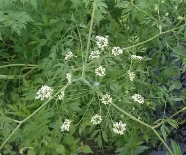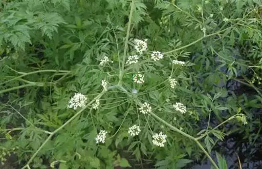 水毒芹已知是剧毒性有毒植物,对各种家畜和人均有毒,而且症状相似。其毒素直接作用于中枢神经系统,引起强烈惊厥,呼吸衰竭而死亡。其块茎给绵羊剂量为体重的0.2~0.5%,牛0.1%、马0.5%均可致死。