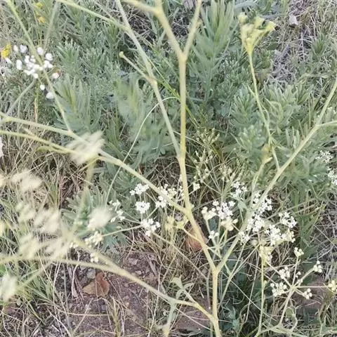 复伞形花序顶生或腋生,花序梗长2.5-10厘米,无毛;总苞片通常无或有1线形的苞片;伞辐6-25,近等长,长2-3.5厘米;小总苞片多数,线状披针形,长3-5毫米,宽0.5-0.7毫米,顶端长尖,中脉1条。小伞形花序有花15-35,花柄长4-7毫米;萼齿明显,卵状三角形;花瓣白色,倒卵形或近圆形,长1.5-2毫米,宽1-1.5毫米,顶端有内折的小舌片,中脉1条;花丝长约2.5毫米,花药近卵圆形,长约0.7毫米,宽0.5毫米;花柱基幼时扁压,光滑;花柱短,长约1毫米,向外反折。分生果近卵圆形,长、宽2-3毫米,合生面收缩,主棱阔,木栓质,每棱槽内油管1,合生面油管2;胚乳腹面微凹。花果期7-8月。