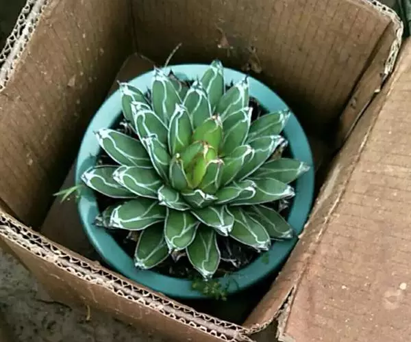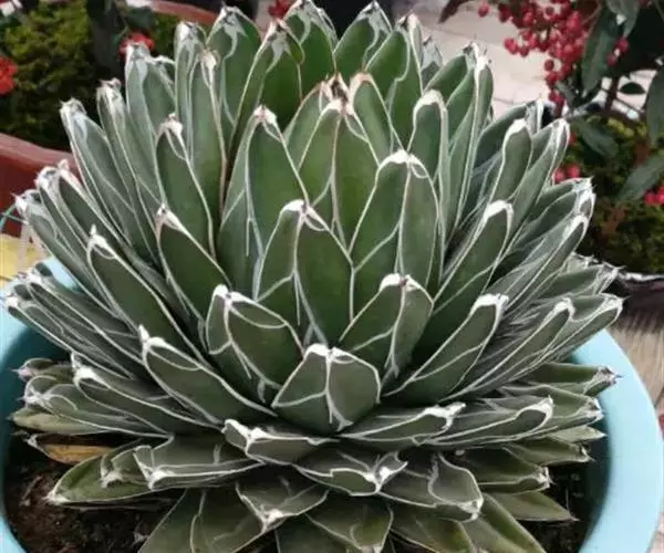 皇后龙舌兰是天门冬科、龙舌兰属多年生草本多浆植物。无主茎,叶丛生,莲座状,株幅40厘米。叶较多,…