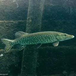 狗鱼属鲑形目,狗鱼科,狗鱼属。即黑斑狗鱼。俗称:狗鱼,鸭鱼。英文名:Pikes , Amur pikc 。狗鱼是在北半球寒带到温带里广为分布的淡水鱼。口像鸭嘴大而扁平,下颌突出。是淡水鱼中生性最粗暴的肉食鱼,除了袭击别的鱼外,还会袭击蛙、鼠或野鸭等。据说一天可以吃和自己体重相当的食物。因为寿命长,偶尔可发现巨大型的个体。因肉味极佳,成为钓鱼的好对象。