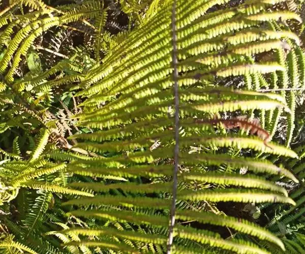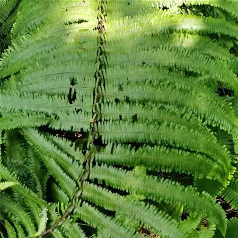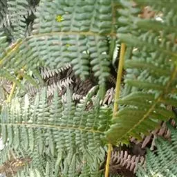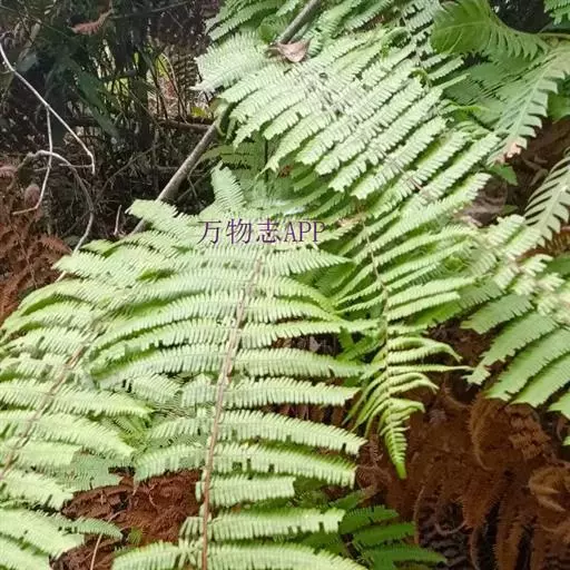 里白属于蕨类植物,植株高达1.5m或更高。根状茎横走,被鳞片。叶柄长约60cm;叶柄有1个密被棕色鳞片的大顶芽,不断发育形成新羽片;2回羽裂,1回羽片对生,小羽 片互生,平展,与羽轴几成直角。叶纸质,上面绿色,下面灰白色。