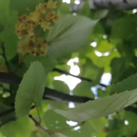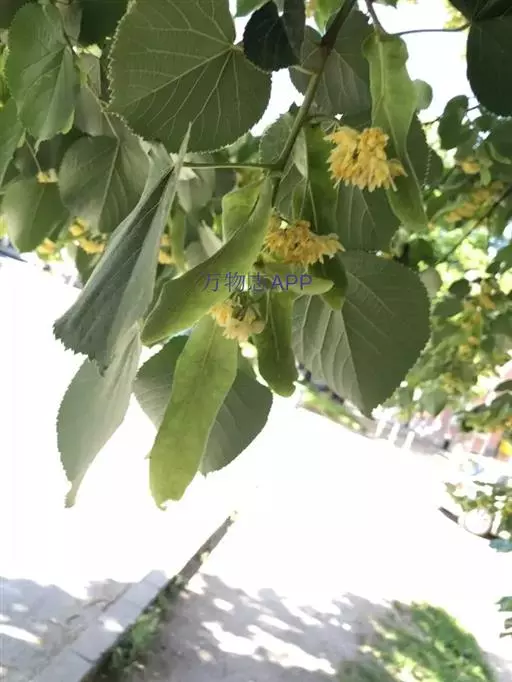 辽椴 高20米,直径50厘米,树皮暗灰色;嫩枝被灰白色星状茸毛,顶芽有茸毛。叶卵圆形,长8-10厘米,宽7-9厘米,先端短尖,基部斜心形或截形,上面无毛,下面密被灰色星状茸毛,侧脉5-7对,边缘有三角形锯齿,齿刻相隔4-7毫米,锯齿长1.5-5毫米;叶柄长2-5厘米,圆柱形,较粗大,初时有茸毛,很快变秃净。