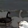 雏鸟为晚成性,刚孵出时体重为50克左右,身上被有稀疏的白色绒羽,头上也有黑色的绒羽,由亲鸟共同抚育。喂食的时候,雏鸟将嘴伸到亲鸟的食道中去取食龙虱等昆虫或蠕虫、小鱼的碎片,天热的时候亲鸟还要站在巢的边沿处用翅膀遮挡住灼热的太阳光。一般需要经过大约40天的喂养,雏鸟才能离巢飞翔。