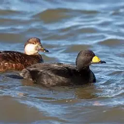 黑海番鸭(学名:Melanitta nigra)为雁形目鸭科的鸟类,俗名美洲黑凫,体长44-54厘米,翼展79-90厘米,体重1300-1500克,寿命16 年。是矮胖型深色海鸭。雄鸟全黑,嘴基有大块黄色肉瘤。雌鸟烟灰褐色,头顶及枕黑色,脸和前颈皮灰黄色。飞行时,两翼近黑,翼下羽深色。属于潜水鸭类。多栖息于海洋、海港以及河口。极善游泳和潜水,在陆地上行走就显得笨拙,除繁殖期外多见于海洋中,主要以贝类为食。分布于北半球较冷地区、欧洲、北美洲、亚洲、非洲,包括中国的江苏、福建等地。