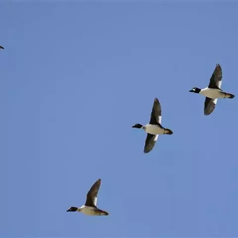 春季于4月至5月开始迁往繁殖地,迁徙中雌鸟和幼鸟不断加入,也有不参与繁殖的幼鸟不迁徙,留在越冬地。秋季于9-10月迁往越冬地。常成群迁飞。飞行极有力,两翅煽动较快,常发出“呼呼”的声响。通常沿海岸迁飞.有时也飞越相当远距离的陆地。沿水域飞行时一般不高飞,但在陆地飞行时却飞得很高。有时中途也在内陆湖泊作短暂停留。飞行队列常呈紧密的一团,或呈波浪式的一条线。