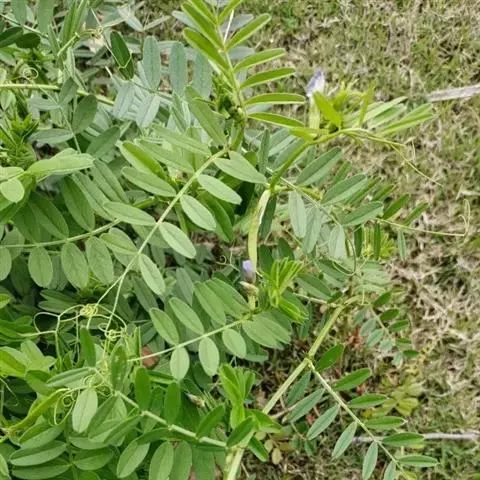 一年生草本,高15-30(40)厘米。茎有棱,多分枝,无毛或稍彼细柔毛。偶数羽状复叶,具3-4(5)对小叶,叶轴末端为单一或分歧的卷须;托叶半箭头形,长3-7毫米,有1至数个锯齿。